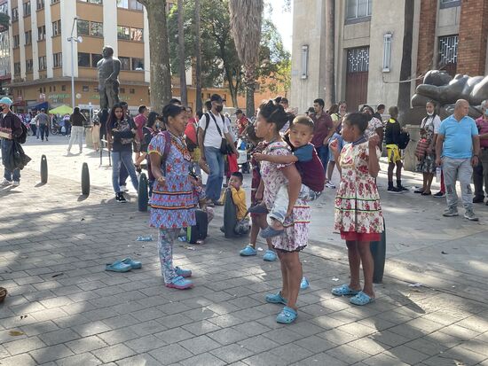 Nachdem die Musik verstummt und ich etwas Geld in ihr Körbchen gelegt habe, frage ich eine der Frauen, woher sie komme. Sie scheint mich nicht zu verstehen, sieht mich fragend an und wendet sich ab. Sie kommen wie aus einer anderen Welt. Ihre Kleider sind sehr speziell, die Röcke ganz fein plissiert. und farbig. Ich muss annehmen, dass sie zu einer indigenen Gruppe gehören. Vor allem in Bogota habe ich gehört, dass sie zur Zeit für ihre Rechte kämpfen. Ein Taxifahrer hatte mir erzählt, dass sie in einem der grossen Parks wohnen und demonstrieren. Vor allem wehren sie sich gegen Familienplanung, verbieten sich jede Einmischung in ihr eigen bestimmtes Leben. Es ist das erste Mal, dass ich indigene hier in Kolumbien tatsächlich sehe.