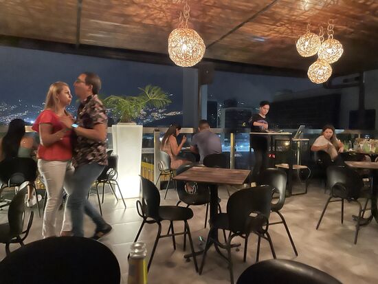 Doch kaum liege ich danach auf dem Bett, überlege, ob ich noch einen Tatort-Krimi suchen soll, als mir die Musik auffällt. Es ertönt ja immer von irgendwo Musik, doch heute scheint es etwas anderes zu sein. Also raffe ich mich noch einmal auf und gehe hinauf zum Dachrestaurant. Und tatsächlich, hier ist heute ein DJ am Werk. Samba und Salsa legt er auf und als kurz darauf eine ganze Gruppe auftaucht, fangen die Leute sogar an, zu tanzen.