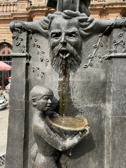 Immerhin stehen sie irgendwann auf, setzen sich zu den beiden Kindern. Damit scheint die Welt wieder in Ordnung zu sein. Die Frau verstummt, die Leute gehen weiter. Auch ich gehe langsam weiter. Bin verstört. Wer sind diese Menschen? Die beiden Mädchen tragen eigenartige Röcke, sie müssen zur gleichen Gruppe gehören, wie die, die gestern auf dem Boteroplatz getanzt haben.