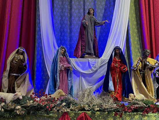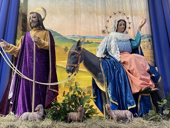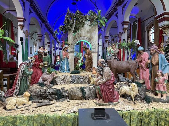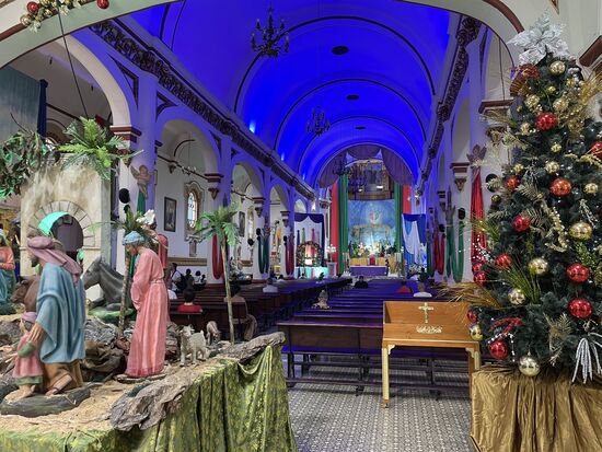 Wenn da nicht diese Kirche im Weg stehen würde. So eine Kirche kann ja kein Grund sein, ein Kapitel anzufangen. Ist es auch nicht. Obwohl sie ziemlich speziell und üppig dekoriert ist. Mit der ersten Krippe, die ich hier in Kolumbien sehe und grossen Szenen, die mit fast lebensgrossen Figuen dargestellt sind. Gut, die kann man ja fotografieren, aber dann ist gut..