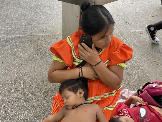 Es hat keinen Sinn, ich wüsste doch nicht wo sie herkommt, auch wenn sie es mir sagen würde.. Wo sie jetzt lebt, will ich noch wissen. Ein Mann mischt sich ein, versucht zu vermitteln. Er meint, dass sie in einem Refugio leben würde. So wie er auch. Auch er hat eine Sammelbüchse dabei. Zeigt ein Bild von sich im Bett mit einer schweren Verletzung, Von einem Auto angefahren, seither hat er seine Arbeit verloren. Er geht an zwei Stöcken. Die Frau zeigt auf ihren Bauch. "Hunger."