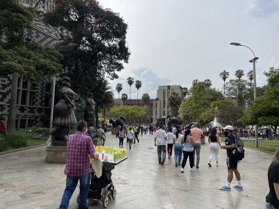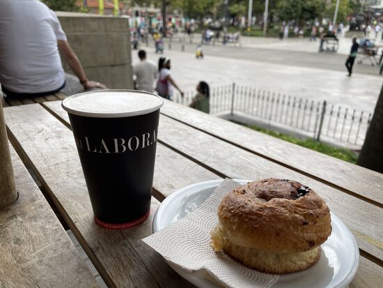 Am Nachmittag finde ich, dass ein Besuch in der Cafeteria am Botero-Platz nicht schaden könnte, also breche ich auf. Gehe den möglichst kürzesten Weg. Vier Blocks gradeaus, dann vier Blocks nach links. Schon bin ich da.