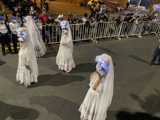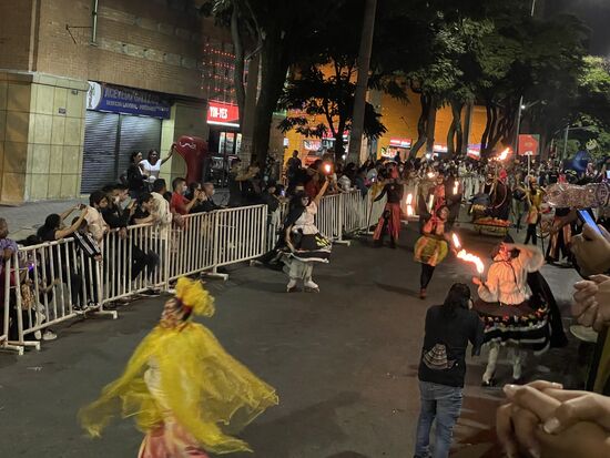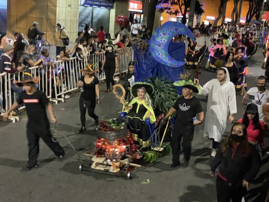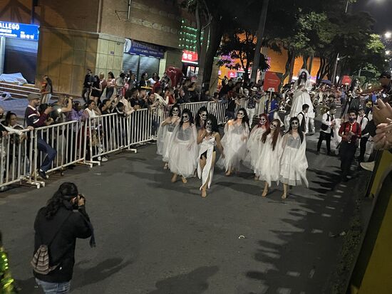 Weg sind alle Bedenken von wegen nachts nicht auf die Stasse zu wollen. Alle anderen sind auf der Strasse. Und ich jetzt auch. Ich laufe neben dem Umzug her, bis ich den Anfang erreiche. Und dann sehe ich einfach nur zu. Staune, was da abläuft. Was ist der Grund? Heute ist der 8. Dezember. Ein katholischer Feiertag. Maria Empfängnis. Doch was hat das mit all den schauerlichen Gestalten zu tun. Denn schauerlich sind sie, jedenfalls die meisten. Es gibt zwar auch Elfen und Waldgeister, aber ganz viele Hexen, monströse Gestalten aus anderen Welten. Totenköpfe, Geister, Gespenster. Dazwischen Gaukler, Feuerschlucker, Stelzenläufer. Es hört fast nicht mehr auf. Und alle bringen ihre Musik mit. Aus Boxen ertönen Melodien oder geisterhafte Töne. Es ist ein Karnevalumzug. Und er scheint quer durch die Stadt zu gehen. Durch abgesperrte Strassen.