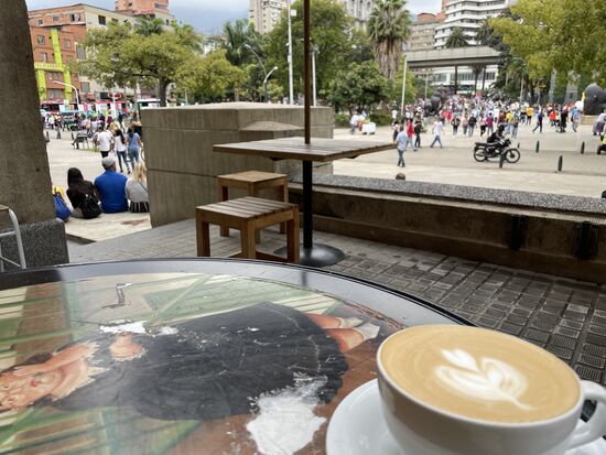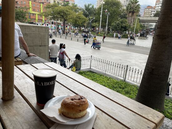 El Laboratirio del Cafe - hier hat man den besten Überblick über den Boteroplatz und ausserdem gibt es den besten Cappuccino, und manchmal hat es noch Zimtschnecken dazu.