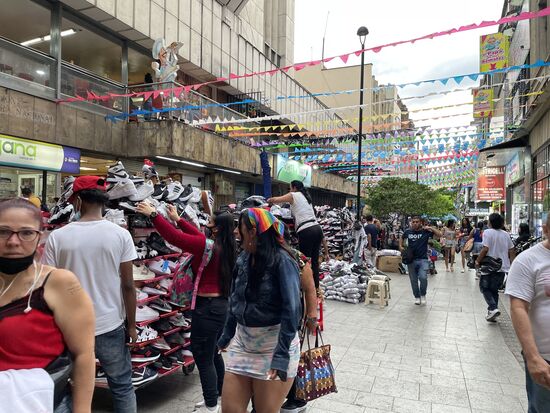 Nicht nur der Gemüse- und Früchtemarkt ist grösser geworden. Auch das Angebot auf dem Warenmarkt bei der Station Berrio ist umfassender geworden. Zum Teil kommt es mir wie Ausverkauf vor. Da gibt es Wühltische, wo die Leute drum herum stehen und sich das beste heraussuchen.