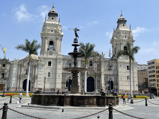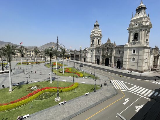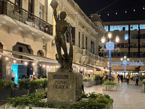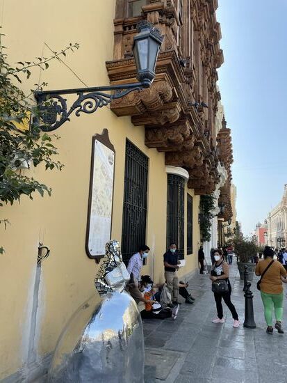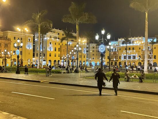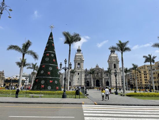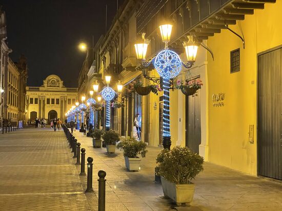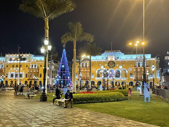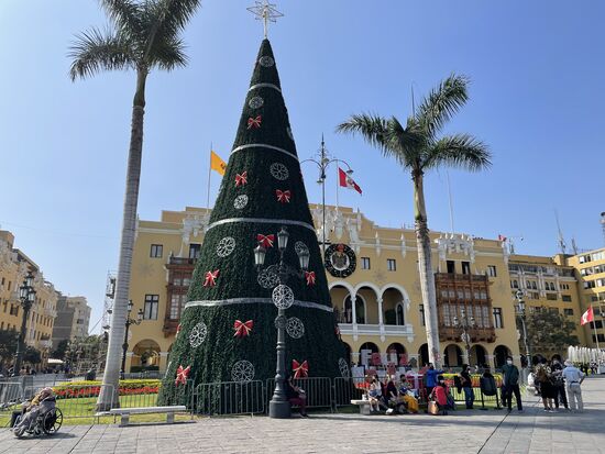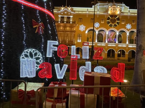 Nachdem ich gründlich ausgeschlafen habe, ist der Plaza de Armas mein Ziel gegen Mittag. Als ich Lima vor knapp drei Monaten verliess, war der Platz noch abgesperrt. Jetzt ist er offen. Nur die Autos sind verbannt. Das stört zwar die Taxifahrer, weil jetzt grosse Umwege gefahren werden müssen, aber für die Fussgänger ergibt sich eine lockere heitere Atmosphäre. Ein riesiger Weihanchtsbaum steht auf dem Platz, ein paar Leute bummeln über den Platz, doch mich zieht es ins Moyas.