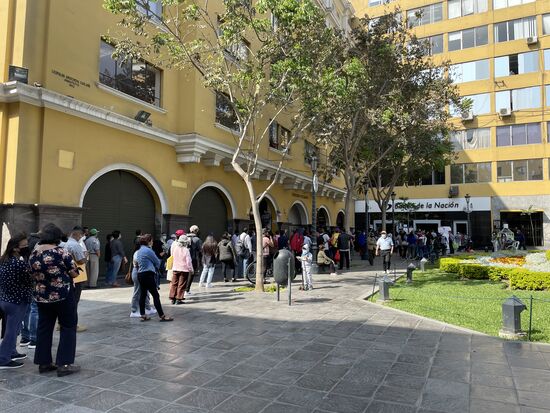 Jetzt geht es zur Migration. Da heisst es anstehen. Eine junge Angestellte in Uniform macht schon mal die Vorsondierung. Sie will mein Impfzertifikat sehen. Und den Code der Migration, den ich am Checkin-Schalter von Medellin bekommen hatte. Und genau diese Seite habe ich versehentlich doch geschlossen. Ich könnte mich ohrfeigen, oder sonst was, hab sie bereits im Flugzeug erfolglos wieder gesucht. Der Code ist verschwunden, war nicht abgespeichert, war nur eine Internet-Seite. Ich zeige ihr den Code, den ich vorher bekommen hatte. Sie ist zufrieden. Das ist ein Code, das zählt. Und das Weiterflug-Ticket? Das will auch niemand mehr sehen. Die Beamtin am Schalter will dann noch wissen, wie lange ich in Peru bleiben werde, bestätigt einen Monat und ich bin angekommen.