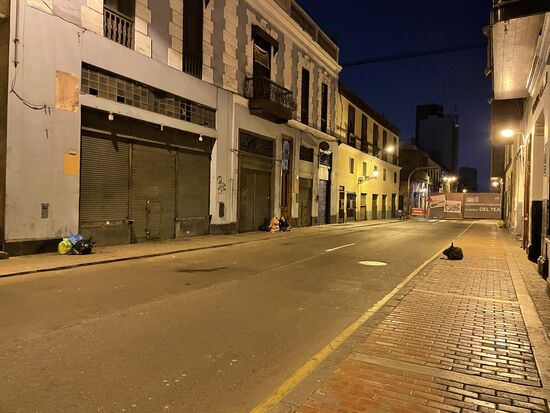 Und dann laufe ich durch die fast leeren Strassen zurück zum Hotel. Es ist friedlich und ruhig. Und das allerschönste: hier bleiben die Abfallsäcke auf der Strasse Abfallsäcke, auch wenn ich näher komme. Es schläft niemand in den Strassen, jedenfalls nicht hier rund um den Hauptplatz von Lima.