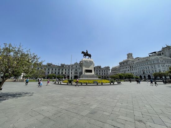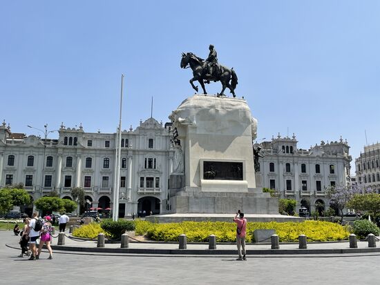 José de San Martin sitzt hoch zu Ross mitten auf dem Platz. Er ist der Mann, der Peru 1721 in die Unabhängigkeit geführt hat. Auch Chile hat er kurz vorher von der spanischen Herrschaft befreit. Gestorben ist er wenige Jahre später in Europa. Ein wichtiger Mann in der Geschichte Südamerikas.