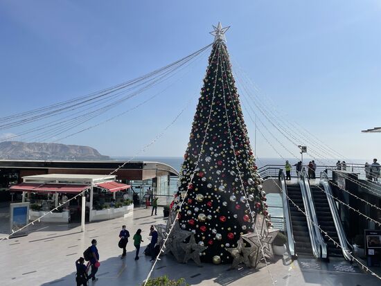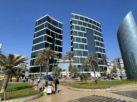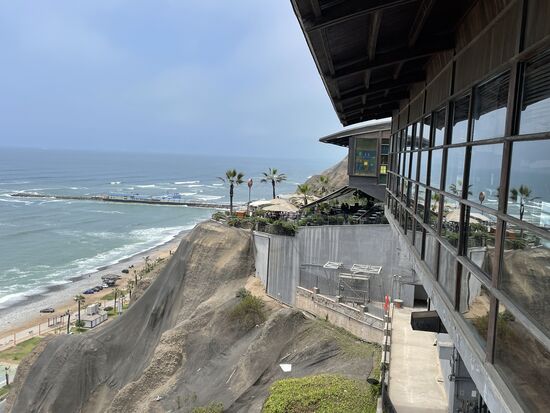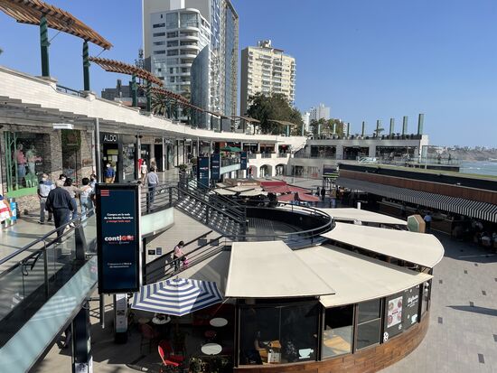 Larcomar, dieses Geschäftsviertel, das 100 Meter über der Steil-Küste hängt. Eingeklemmt unter den eindrucklichen Türmen des Marriot-Hotels und mit der unüberbietbaren Aussicht auf das Meer, den Pier mit der Rosa Nautica weiter unten und den Stränden, wo sich immer Surfer tummeln.