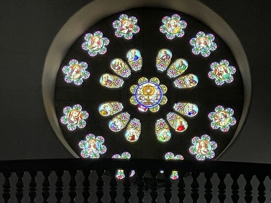 Die Kirche ist sehr hübsch und ihr Stil ist eher zierlich. Da ich jetzt schon mal da bin und sie ausserdem grad offen ist, besichtige ich sie auch innen. Vor den Stufen des Alters findet grad ein Fotoshooting statt. Zwei Buben werden fotografiert, wahrscheinlich sind sie Zwillinge und feiern einen bestimmten Geburtstag.