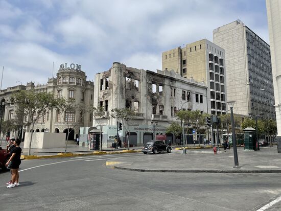 Neben dem Hotel Colon mit der klassischen Fassade steht noch immer eine Brandruine. Gebrannt hatte es vor ein paar Jahren und ich habe das Gefühl, dass die Ruine jedesmal schlimmer aussieht. Doch jetzt ist sie von einem Verschlag geschützt und es scheint, dass endlich etwas Bewegung in die Sache kommt. Vielleicht wird das Haus jetzt tatsächlich renoviert oder neu gebaut, jedenfalls verstehe ich die Hinweise auf den Schilder so.