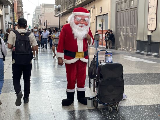 Auf dem Plaza San Martin treffe ich die jungen Leute wieder und ich frage sie, wer sie sind und was sie vorhaben. Es stellt sich heraus, dass es eine Gruppe Uni-Studenten ist, die gemeinsam gesammelt haben, um den Menschen auf der Strasse Weihnachten zu bringen. Die Gruppe sei spontan entstanden, aber sie haben grosses vor. Wie ich in ihrem FB-Portrait sehe ist ihr Slogen: Heute ist es Lima, morgen ganz Peru. Sie wollen etwas in Bewegung setzen. Wir tauschen kurz die Kontaktdaten aus, und ich gebe etwas für ihre Kasse und schon ziehen sie weiter. Auf der Suche nach den Menschen auf der Schattenseite des Lebens.