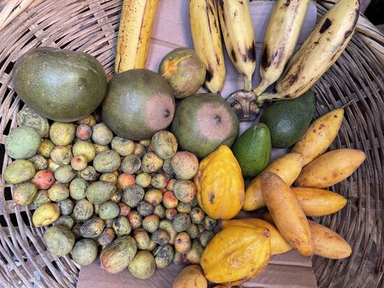 Sie hat aber noch mehr spannende Früchte. Zum Bespiel die kleinen schrumpeligen beerenähnlichen Knollen. (Hab meine Notizen verlegt, vielleicht kann ich den Namen später hier einsetzen). Eine Verwandte der Mangos, man braucht sie nicht zu schälen, einfach grad so essen.