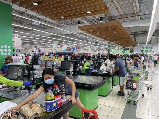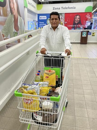 "Lass uns einkaufen gehen", schlage ich ihm vor und kurz darauf sind wir in einem Supermarkt am Einkaufen. Was braucht es alles für eine Weihnachtsüberraschung? In Iquitos haben wir unseren Angestellten damals jeweils ein Poulet, eine Flasche Spumante und eine Panetone geschenkt. Ungefähr in dieser Währung kaufen wir ein. Dazu ein gebratenes Hühnchen und ganz viele Chips. Inca Cola, Schokolade, eine riesige Torte, bis Juan die Tränen in den Augen stehen. Dann ist das wohl genug und wir gehen zur Kasse.