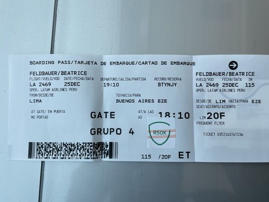 Die Angestellte sieht sich meinen Pass an: Schweizerin. In dem Fall bräuchte ich das Online-Formular für die Migration gar nicht erst auszufüllen, da reiche ein Papier, das ich unterschreiben müsse, ich müsse mit dem Beamten bei der Migration reden. Bevor sie mir meinen Boarding-Pass ausstellt, will sie noch das Impfzertifikat sehen, den negativen Test, den Pass, von Ausflugsticket ist überhaupt nicht die Rede und dabei habe ich doch gestern extra noch den Rückflug in die Schweiz gebucht. Jetzt will das niemand mehr wissen. Für mich geht es jetzt auch vor allem darum, nach Argentinien einzureisen.
