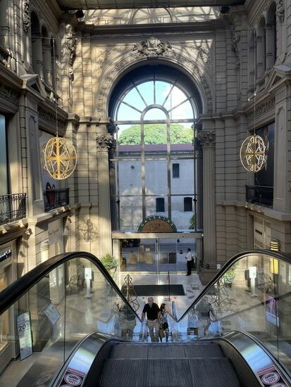 Noch mache ich mir keine weiteren Sorgen, bestelle eine Lasagne und mache mich danach zu einem ersten Spaziergang auf. Zum Obelisken, der immer wieder am Ende der Strasse auftaucht. Er steht mitten in der Avenida des 9. Juli, die die breiteste Strasse der Welt sein soll. Zum Teil sind es in beide Richtungen 6 Spuren, unterbrochen von Grünflächen. Ganz in der Nähe ist das Teatro Colon. Leider gibt es zur Zeit keine Vorstellungen, sie werden erst Mitte Januar wieder aufgenommen. Auch keine Führungen sind angesagt, nur das Restaurant im gewaltigen Gebäude ist offen. Hier trinke ich noch einmal einen Cappuccino und merke bereits, dass mein bisschen Geld mir nur so durch die Finger rinnnt. Werde das mit den Bankautomaten noch einmal etwas genauer studieren müssen.