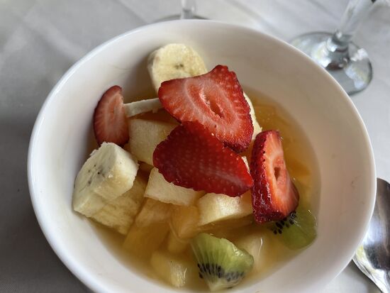 Das Essen ist fantastisch, der Service vom jungen Kellner sehr kompetent und aufmerksam. Am Schluss offeriert er mir sogar noch einen Champagnerdrink. Mit viel Pfirsichsaft und wenig Champagner, wie er versichert. Ich hatte abgewunken, als er mir einen Champagner als Abschluss bringen wollte. Es ist noch zu früh, für mehr als ein Glas Alkohol, meinte ich, da ich bereits einen sehr feinen frischen Weisswein getrunken hatte.