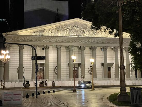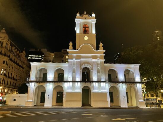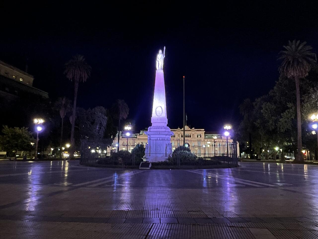 Erst viel später in der Nacht mache ich mich noch einmal auf zu einem Spaziergang. Eigentlich suche ich das Lokal, das ich tagsüber gesehen hatte. ich glaubte, es würde abends eine Tangoshow bieten, doch es stellt sich heruas, dass es eine Diskothek ist, die wohl erst nach Mitternacht Gäste hat. Da ich aber schon einmal da bin, laufe ich weiter. Überwinde meine Bedenken von wegen nachts allein auf der Strasse und komme zur Casa Rosada. Da sehe ich mich etwas um, fotografiere das alte Rathaus, die Kathedrale, die von Papst Franciscus besucht wurde, wie mir der Taxifahrer gestern Abend erklärt hatte, laufe weiter bis zum Obelisk und zurück auf der Prachtstrasse Avenida del Mayo.