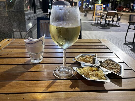 Hier kehre ich in einem der Bistro ein, das noch offen hat, und bestelle ein Glas Weisswein.