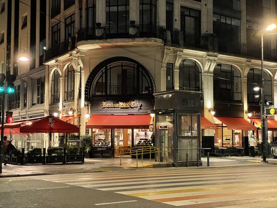 Es ist kurz vor Mitternacht, als ich mich auf den Rückweg mache. Inzwischen sind fast alle Restaurants geschlossen. Vor den vornehmen Speiselokalen suchen Kellner nach zufällig vorbei fahrenden Taxis für ihre letzten Gäste, sonst sind die Strassen leer und still. Es sind auch nicht mehr viele Autos unterwegs um diese Zeit.