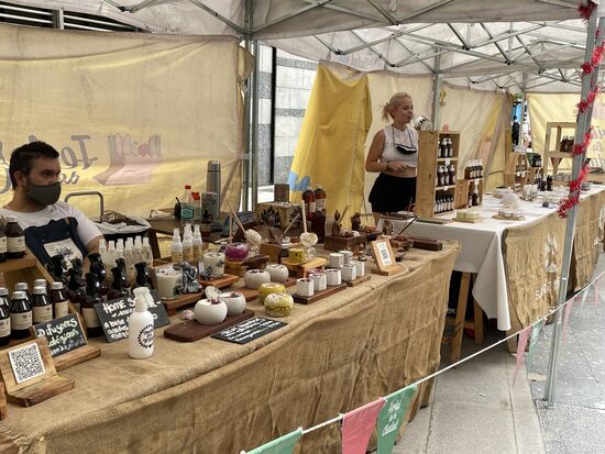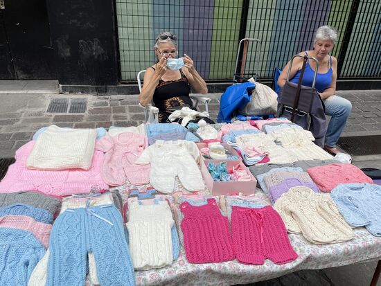 Heute scheint ein Markttag zu sein. In der Fussgängerzone Florida sind verschiedene Marktstände aufgestellt. Es gibt Handarbeiten und selbstgemachte Lebensmittel. Konfitüren, Honig, Sirup, Naturkosmetik. Die ganze Palette von handgefertigen Sachen. Auch Stricken scheint in zu sein, ich staune über die wollenen Sachen für kleine Kinder. Ob das für die nicht viel zu heiss ist?