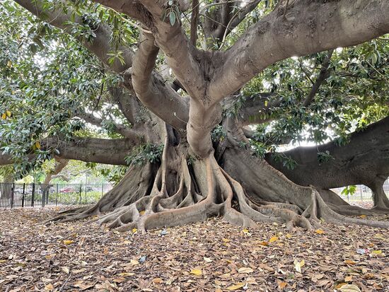 Mit dem Ticket für heute Abend verabschiede ich mich von Oscar und laufe weiter, verlasse die Fussgängerpassage, laufe weiter über Plätze, überquere breite Strassen, komme an Parks mit uralten riesigen Bäumen vorbei.