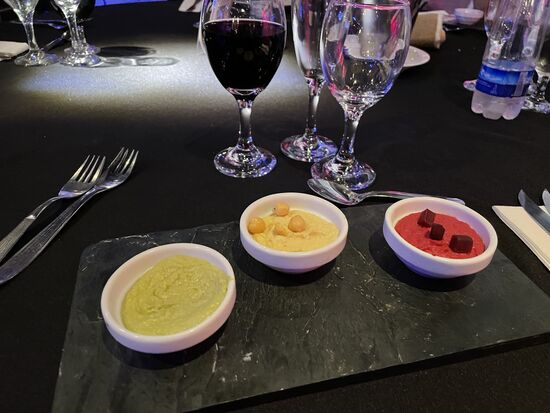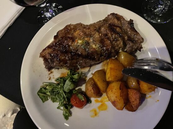 Ich wähle eine Komposition von 3 x Humus, ein Babybeef und als Dessert ein Yoghurtmousse. Es schmeckt alles sehr fein, auch wenn der Service eher an eine Massenabfertigung erinnert. Dazu gibt es ein paar Flaschen Wein auf den Tisch. Die Jungen bleiben allerdings lieber beim Wasser, nur zum Anstossen haben sie sich etwas eingeschenkt. Die Brasilianer aber lieben den Wein.