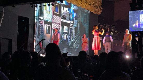 Mit etwas Verspätung fängt die Show an. Wir müssen uns etwas arrangieren, damit wir trotz der Säule vor uns alle zur Bühe sehen. Isaque und Selma haben sich eine Flasche Wein geschnappt und sind zu einem der kleinen Tische gewechselt, der zufällig frei geworden ist und einen freien Blick auf die Bühne hat.