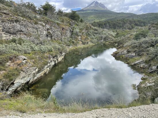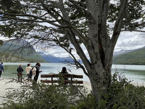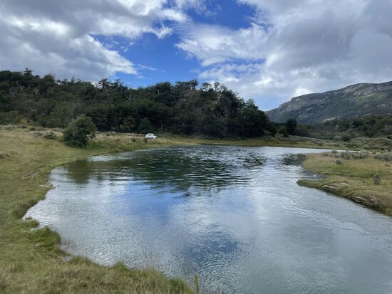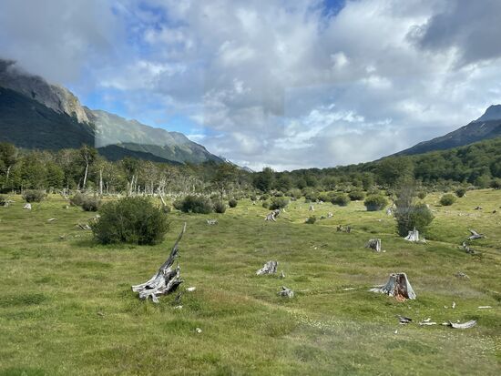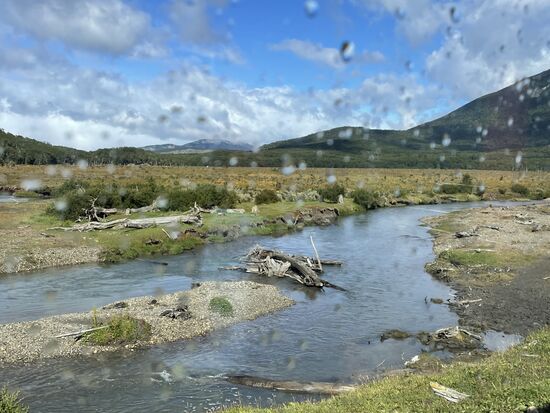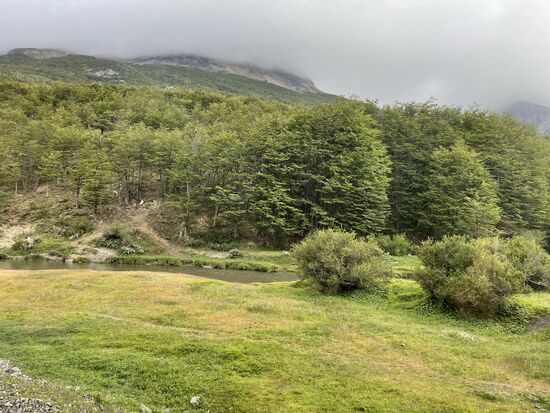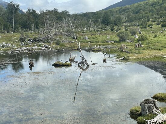 Es gibt hier eigentlich nur drei verschiedene Bäume, die Biodiversität ist nicht sehr hoch unter den erschwerten natürlichen Bedingungen. Auch einheimische Tiere gibt es nicht viele. Der Fuchs, das Guanaco gehören dazu, an das dritte Tier kann ich mich nicht mehr erinnern. Auffällig ist, dass es hier kaum Insekten gibt, nicht einmal Ameisen und natürlich auch keine Wespen oder andere Stechmücken. Dafür gibt es keine genauen Erklärungen, ausser, dass Feuerland eine Insel ist und das Übersetzen schwierig sei. Ein Tier, das sich allerdings ungehindert ausbreitet, ist der Biber. Vor Jahren wurde er auf Feuerland ausgesetzt um ihn zu jagen. Zu spät merkte man, dass der Bedarf für Biberfelle zu gering ist, die Biber sich aber wegen fehlender Feinde jetzt ungehindert verbreiten und die Gegend teilweise komplett verändern, indem sie Wasserläufe umleiten und Bäume willkürlich fällen. Der Biber ist hier zu einer echten Plage geworden.