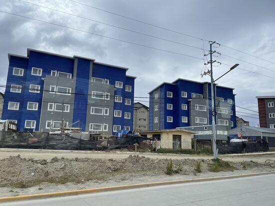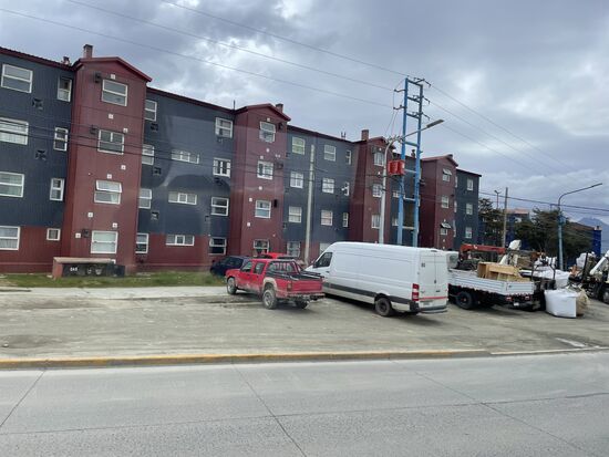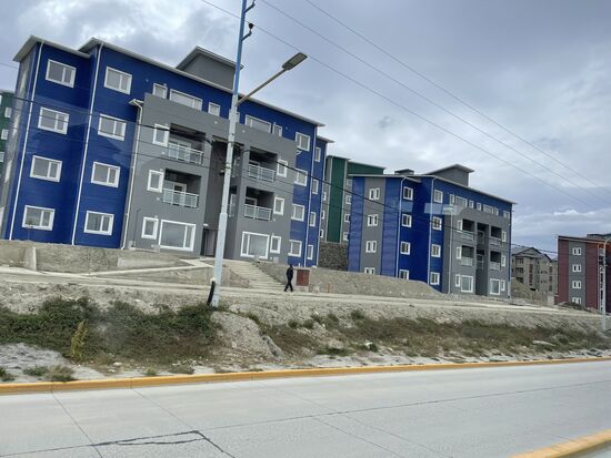 Nach diesem letzten Halt fahren wir zurück in die Stadt. Dabei fällt mir am Stadtrand das neue Quartier auf. Viele neue Mehrfamilienhäuser sind hier in den letzten Jahren entstanden. Es sind Blöcke, alle genau gleich, sie unterscheiden sich einzig in ihren intensiven Farben. Eine merkwürdige Ergänzung zu den traditionellen einfachen Häusern der Stadt. Ushuaia hat sich in den letzten Jahren tatsächlich sehr vergrössert.