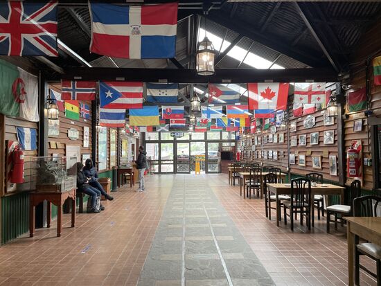 In der Bahnhofhalle sehe ich, dass es verschiedene Züge gibt. Die beiden ersten sind bereits losgefahren, jetzt wird Zug Nummer 3 bereit gemacht, ich bin in Gruppe 4. Also genügend Zeit, mich umzusehen. Der Zug ist sehr beliebt und begrüsst seine Gäste aus der ganzen Welt. mit ihren Landesflaggen. Auch eine Schweizer Fahne entdecke ich nach einigem Suchen in einer Ecke.