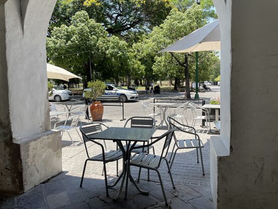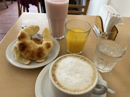 Einen Block weiter finde ich ein ganz winziges Cafe mit ein paar wenigen Tischen. Hier bestelle ich ein kleines Frühstück mit Medialunas - süssen Halbmonden und Joghurt. Jetzt bin ich gerüstet für den Tag.