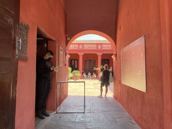 Und übrigens, auch bröckelnde Mauern und abspitternder Verputz haben ihren Reiz. Ich schlendere durch die verkehrsreduzierten Strassen, die auf beiden Seiten mit grossen Eisenkugeln einen Fussgängerbereich absichern, finde Fassaden in den typischen Erdtönen Ocker und Tizianrot. Finde die schattigen Arkaden am Hauptplatz, lange Alleen unter kühlenden Bäumen. Bewundere die Spitzbögen mit den Verzierungen, die Säulen an den Häusern, die Gitterbalkone. Ja, ganz langsam nimmt mich der Zauber der Stadt gefangen und ich versuche so viel als möglich mit Augen und Kamera einzufangen.