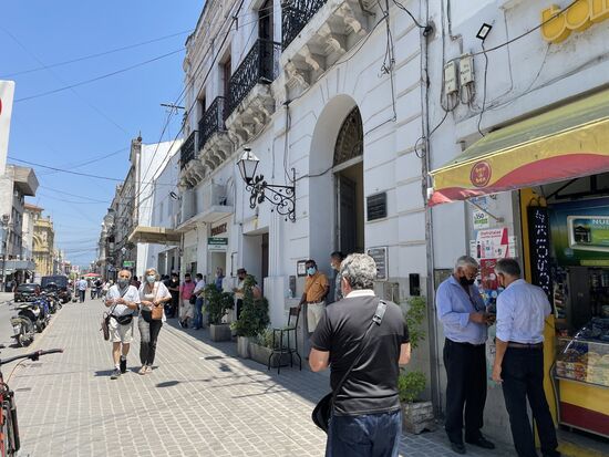 Die Entäuschung muss mir auch hinter der Maske anzusehen sein, jedenfalls meint die Frau, warte mal, gehen wir zu meiner Freundin über die Strasse. So komme ich zu Mercedes, die mir zwar auch kein Ticket verkaufen kann, aber immerhin verspricht, sich bei einem Freund zu erkundigen, der beim Zug arbeitet. Vielleicht gibt es im letzten Moment jemanden der absagt, eine kleine Chance besteht immer.