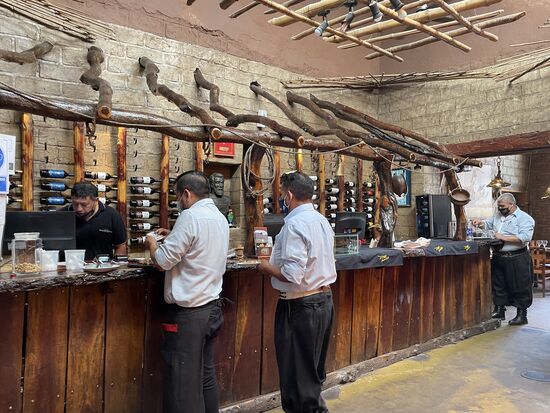 Zum Nachtessen leiste ich mir heute etwas Besonderes. Jedenfalls scheint mir das Dona Salta zu den besten Restaurants zu gehören. Auf jeden Fall zu den schönsten mit seinen vielen hohen Räumen, dem kolonialen Stil, dem rustikalen Charme mit den eigenartigen Lampen aus Wurzelgeflecht.