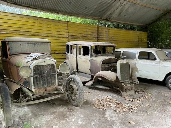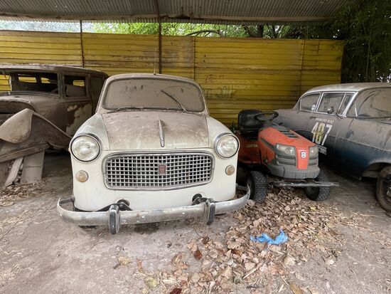 In einer Remise entdecke ich vier alte Autos. Das würde bestimmt noch fahren, meint ein Mann, der bewundernd die Fahrzeuge betrachtet und zeigt auf den alten Fiat.