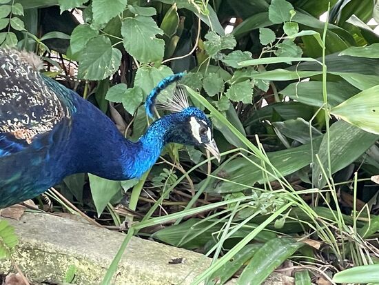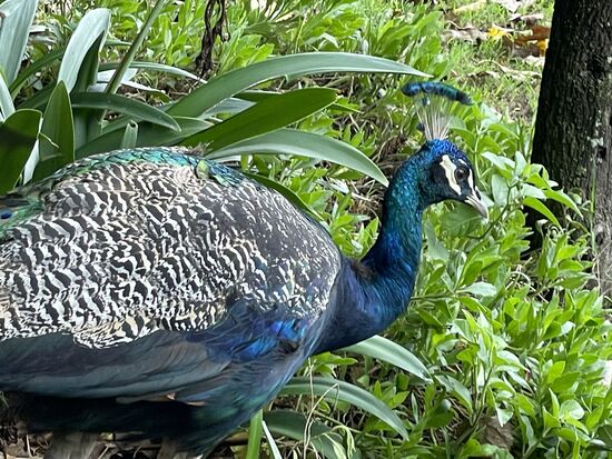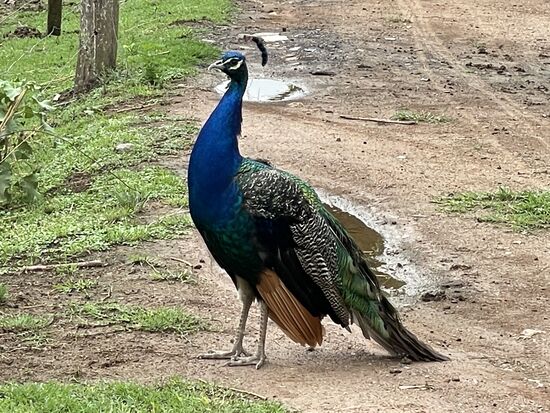 Andere Fotosujets stolzieren über den Hof. Die paar Pfauen haben leider ihre langen Schwanzfedern im Moment verloren. Es ist also noch mit einem Rad zu rechnen.