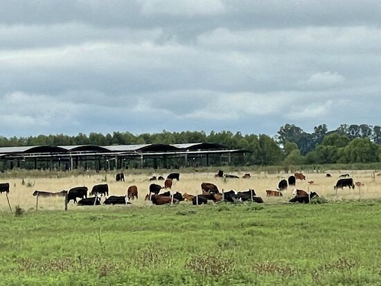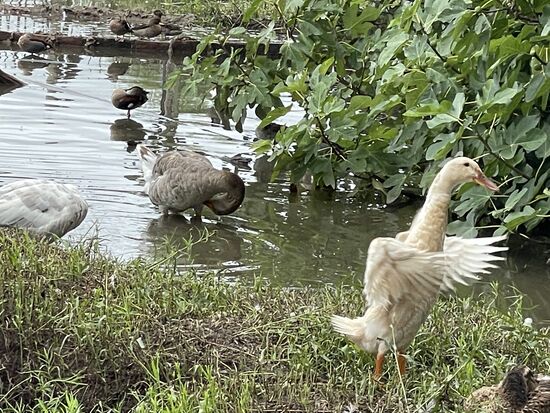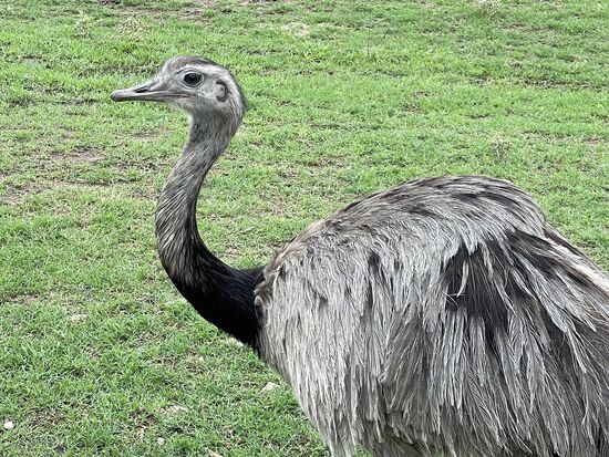 Etwas weiter weg grast eine Herde Rinder und im kleinen Weiher schwimmen Gänse und Enten. Und der rosarote Vogel wird wohl ein Rosalöffler sein. Kürzlich hatte ich im Zoo ein paar gesehen. In einem anderen Weiher wartet ein einsamer Flamingo und sucht die Wasseroberfläche nach etwas Essbarem ab. Auf der Weide staksen ein paar Nandus. Sie werden auch südamerikanische Vogel Strauss genannt, sind aber etwas kleiner als ihre australischen Verwandten.