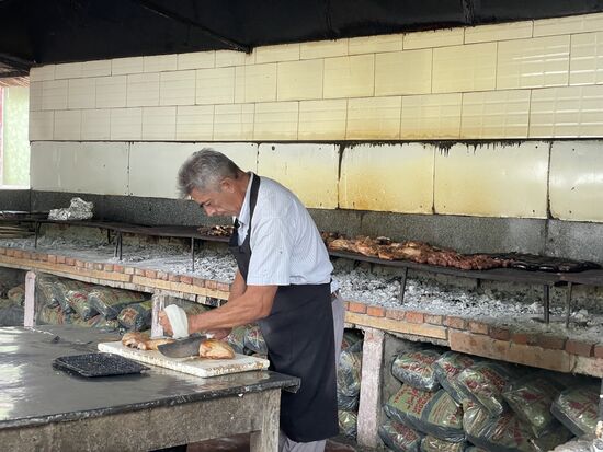 Während die Gauchos noch mit den Fleischplatten von Tisch zu Tisch gehen, unterhält uns ein Sänger mit seiner Gitarre. Er singt vom Leben der Gauchos, von Romantik am Lagerfeuer.