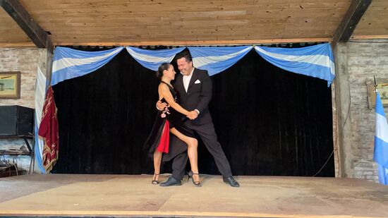 Als Höhepunkt tritt ein Tanzpaar auf. Zuerst tanzen sie einen Chacaranda, so wie ich sie in Salta jeden Abend gesehen habe, danach ziehen sie sich um und tanzen den klassischen Tango. Und dann gibt es sogar noch eine kleine Tanzlektion bei dem der Tänzer die Gäste auffordert, mitzumachen. Man nennt das eine Merengue, denn es ist erst die Vorstufe zum komplexen argentinischen Tango.