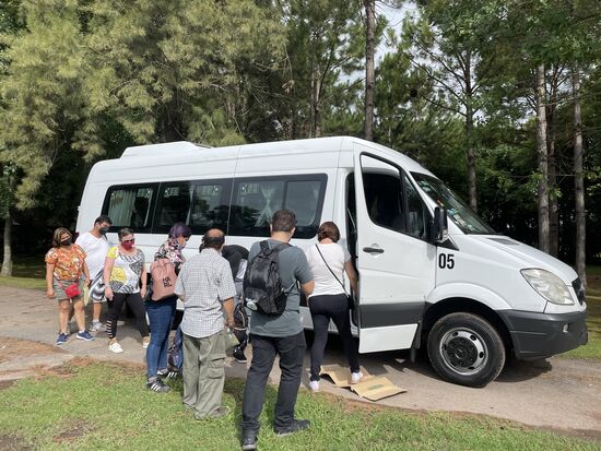 Wir sind eine kleine Gruppe, meint Juan, der mich mit dem Van als erste abgeholt hat. Wir sammeln die anderen in den verschiedenen Hotels ein. Dabei fällt mir wieder auf, wie schön die Bäume zur Zeit blühen. Die rosafarbenen Flaschenbäume, die leuchtenden gelben Blüten in den Parks.