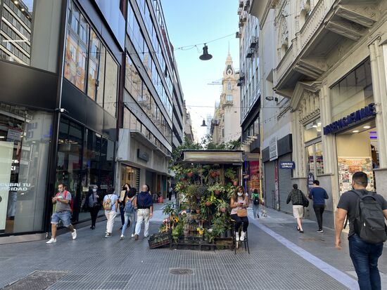 "Komm mit", meint er und führt mich über die Strasse, zur Avenida 9 July und dort zu einem Blumenladen. Tatsächlich ist es genau der Blumenladen, bei dem ich vor ein paar Wochen an einem Sonntagmorgen meinen Kaffee getrunken habe. Ich muss in den kleinen Verschlag hinter den Blumen eintreten, wo mich ein Geldwechsler erwartet und mir meine Pesos auszahlt. Wusste ich es doch, dass die vielen Leute, die auf der Strasse Dollar wechseln wollen, gar nicht selber das Geld haben. Sie arbeiten alle für ein paar diskrete Geldwechsler in ihren versteckten Wechselstuben. Mein Vermittler wartet draussen, wird wohl seine Provision bekommen, sobald ich weg bin.