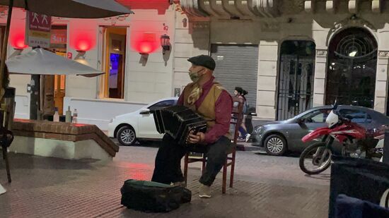Wir wechseln die Kontakt-Daten, wer weiss, vielleicht komme ich wieder einmal hierher und vielleicht arbeitet sie dann immer noch hier. Ausserdem machen wir noch ein paar Fotos. Ich trinke ein letztes Glas Weisswein und höre dem Musikant zu, der mit seinem Bandoneon meine Stimmung genau auffängt. Das Bandoneon ist ein sehr typisches Musikinstrument, das zum Tango gehört. Ursprünglich eine deutsche Handorgel hat sie sich zu einem eigenen Musikinstrument entwickelt. Der ältere Mann, der für die paar verbliebenen Gäste spielt, spielt eine Mischung von Traurigkeit, Melancholie aber auch Fröhlichkeit. Genau so wie ich mich fühle. Abschied und Aufbruch.