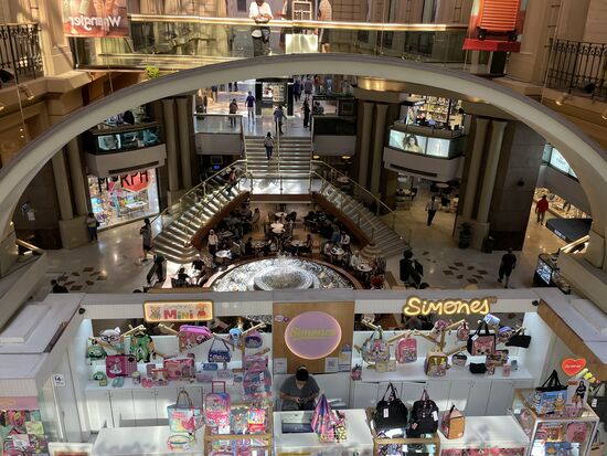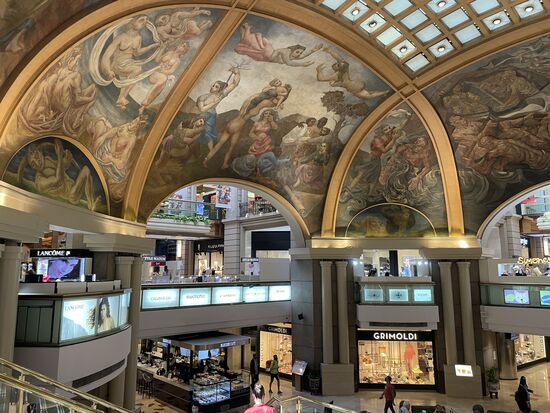 Über 150 Geschäfte sollen sich hier unter dem gewaltigen Dach befinden. Es sind vor allem die grossen internationalen Marken und teure Kleiderboutiquen. Schmuck und Uhren, auch die Swatch hat einen eigenen Store. Ich schlendere ein wenig über die Galerien, bewundere die Recycling-Kleider, die von Schülern einer Modeschule hier ausgestellt werden. Sie erinnern mich an meine brasilianische Freundin Suelli, die in Zürich Kleider und Dekogegenstände aus Kaffeekapseln herstellt.