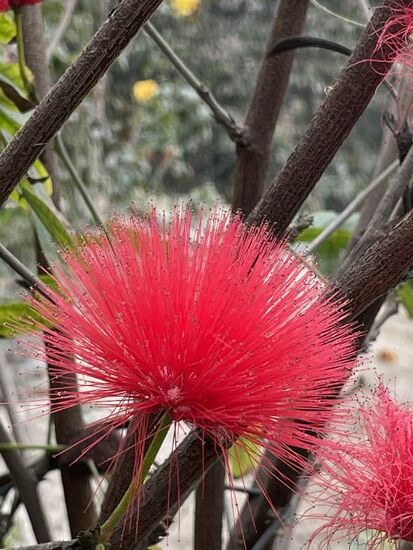 Hinter dem Haus, nach einem langen Gang sind wir draussen im Garten wo ein steinigiger Pfad den Hang hinauf führt. Hier wachsen sehr viele Bäume. Ein Überbleibsel aus der Zeit, als hier noch Farmen waren. Alle anderen Bereiche wurden gerodet, Häuser gebaut, aber hier hat jemand ein Stück Land in seinem Ursprung belassen. In all dem Staub und der Wüste gibt es ein paar Bäume.