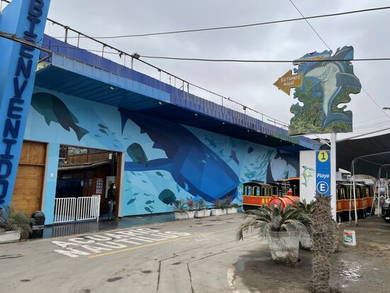 Das heutige Ziel ist das Aquarium von Lima. Eigentlich dachte ich, dass ich das auch gut alleine besuchen kann, es ist ja immerhin noch innerhalb der Stadt Lima, aber da Juan noch nie dort war, und es ausserdem immer interessanter ist, einen Ort gemeinsam zu besuchen, erwartet er mich vor dem Eingang, als ich mit dem UBER ankomme.
