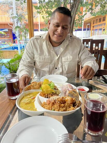 Wir bestellen die grosse Fischplatte mit den beiden typischen Fischspezialitäten Ceviche und Tirandito. Sie schmeckt ausgezeichnet. Dazu einen Krug Chicha Morada, der aus Mais gemacht wird. Er hat einen eigenartigen Geschmack, den ich nie mit Mais in Verbindung bringen würde. Ich mag ihn, muss mich allerdings jedesmal wieder zuerst daran gewöhnen,