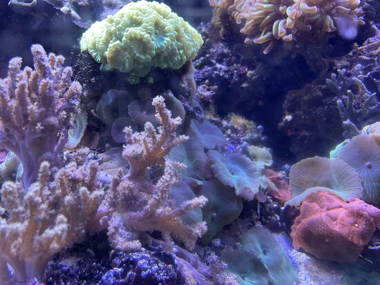 Nach den Amazonas-Fischen kommt die Abteilung mit den Korallen. In kleinen Aquarien leuchten sie in allen Farben und strecken und fächeln mit ihren Blättern und Tentakeln. Sie sehen aus wie Pflanzen, sind aber Tiere, wird uns erklärt und wenn man sie genau ansieht und ihren Bewegungen folgt, kann man das erahnen.