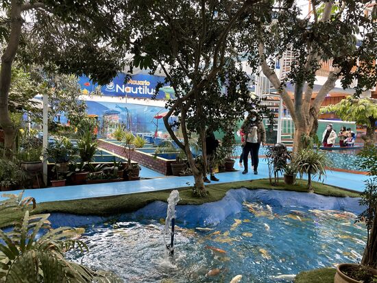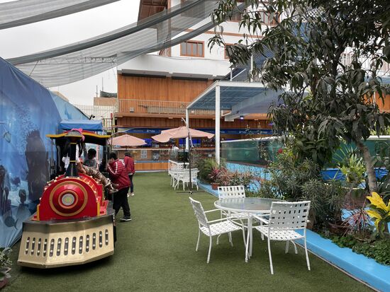 Eigentlich hätte ich ein Aquarium in der Nähe des Meeres erwartet, aber das Acuario Nautilus ist weit im Westen der Stadt. 30 km, schon fast in der Vorstadt, jedenfalls sind hier einige Strassen nicht asphaltiert und mein UBER-Fahrer würgt sich durch die Schlaglöcher. Der Eingang ist vielversprechend frisch blau bemalt, vor dem Eingang steht ein kleiner Zug, mit dem man eine Fahrt durch das Quartier machen könnte, doch er scheint im Moment nicht in Betrieb zu sein.